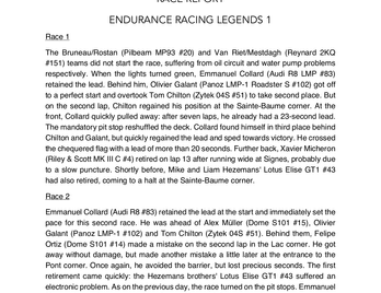 Rapport de course-Race report